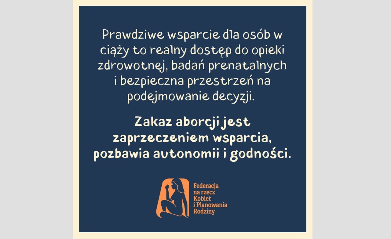 „Jako Federacja opowiadamy się za samostanowieniem i autonomią w kwestiach posiadania bądź nieposiadania dzieci. To skandaliczne, że w Sejmie nie tylko debatuje się nad przymusem rodzenia, lecz także pozwala na upowszechnianie ewidentnych kłamstw o aborcji w Polsce”, komentuje dyrektorka Federacji Krystyna Kacpura.