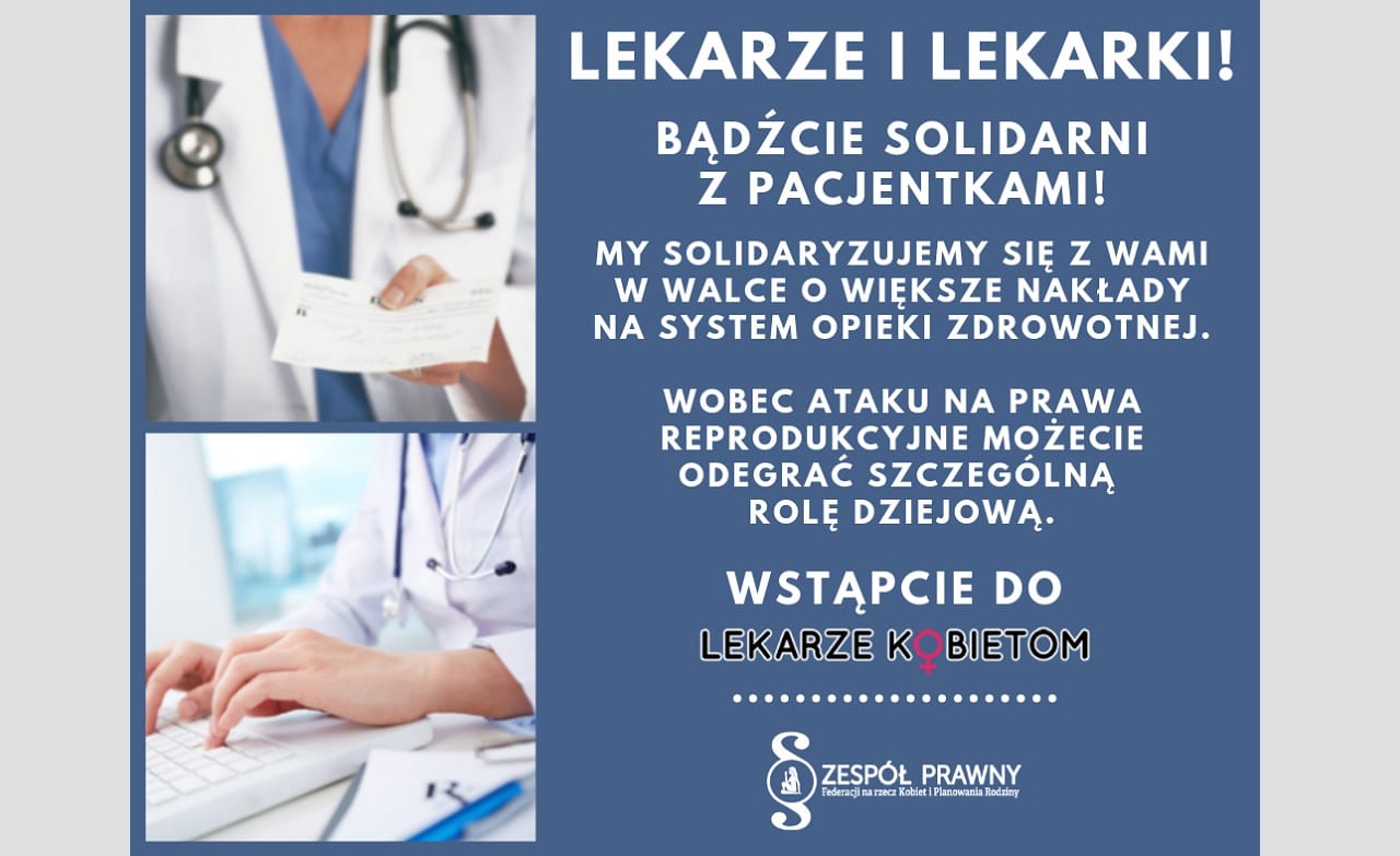 Na koniec apelujemy, by zrozumieć naszą perspektywę. Pomagamy kobietom i na co dzień słyszymy, jak źle zostały potraktowane przez lekarzy: „nie, bo nie”, „czego Pani tu szuka” itd. Wiemy, że są tysiące wspaniałych lekarzy i lekarek, tylko nasze pacjentki akurat na nich nie trafiają.